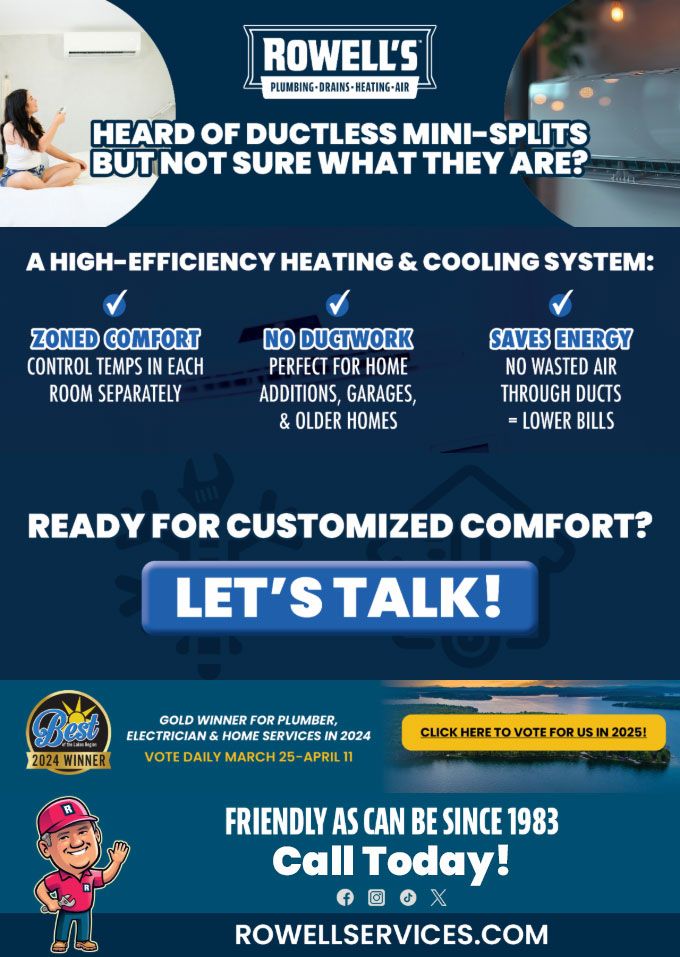 "Friendly As Can Be Since 1983!" When you need help with your plumbing, drains, heating, cooling or electrical in Carroll, you can always rely on Rowell's Services! Call us now or book online!