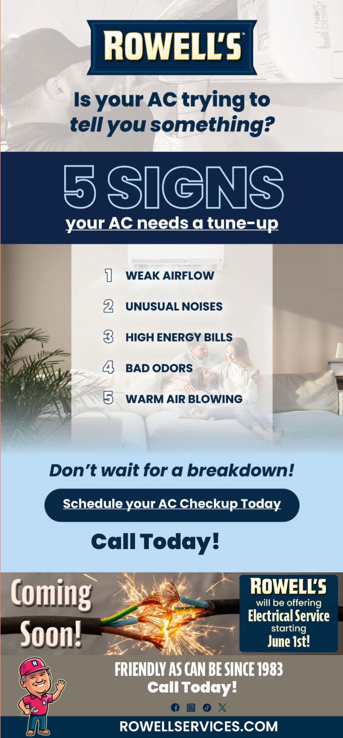 "Friendly As Can Be Since 1983!" When you need help with your plumbing, drains, heating, cooling or electrical in Carroll, you can always rely on Rowell's Services! Call us now or book online!
